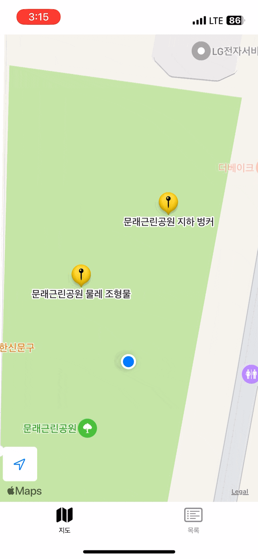 (1) 사용자 위치와 가장 가까운 annotation과 거리를 계속 계산하여 도착 뷰가 뜨도록 구현했습니다.