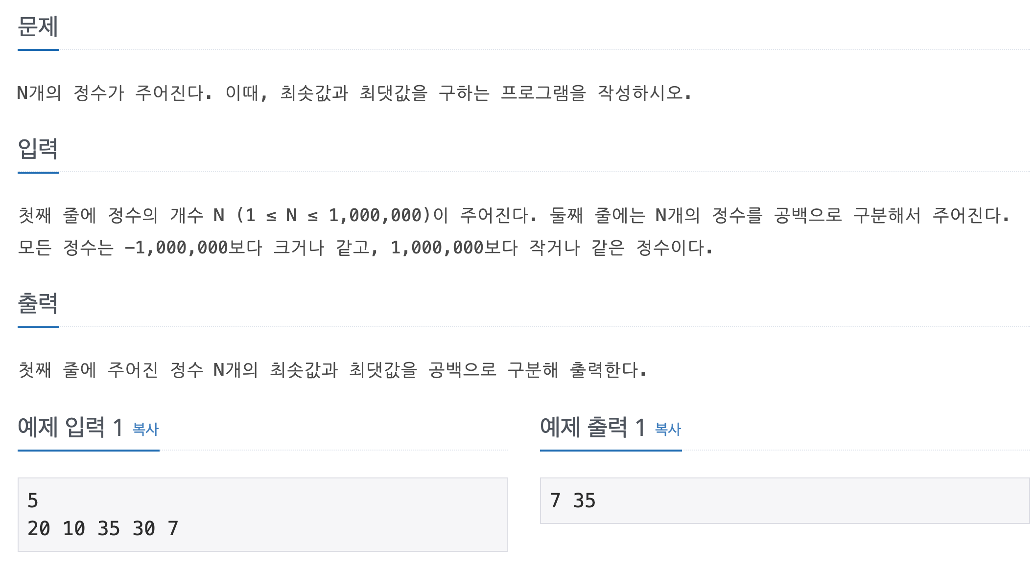 // 최솟값과 최댓값을 공백으로 구분하여 각각 출력