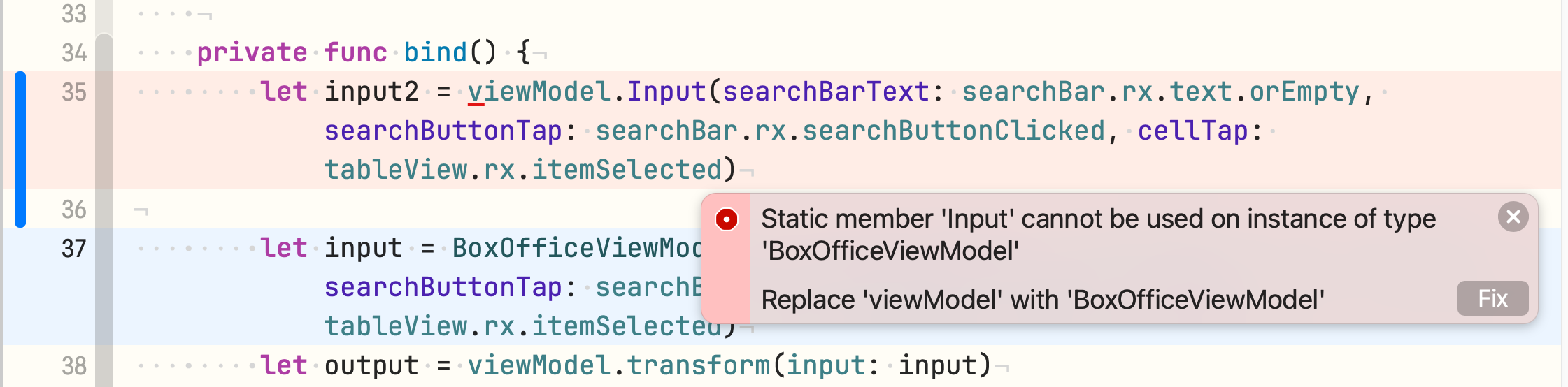 정적 멤버인 'Input'을 'BoxOfficeViewModel'의 타입의 인스턴스로 사용할 수 없습니다