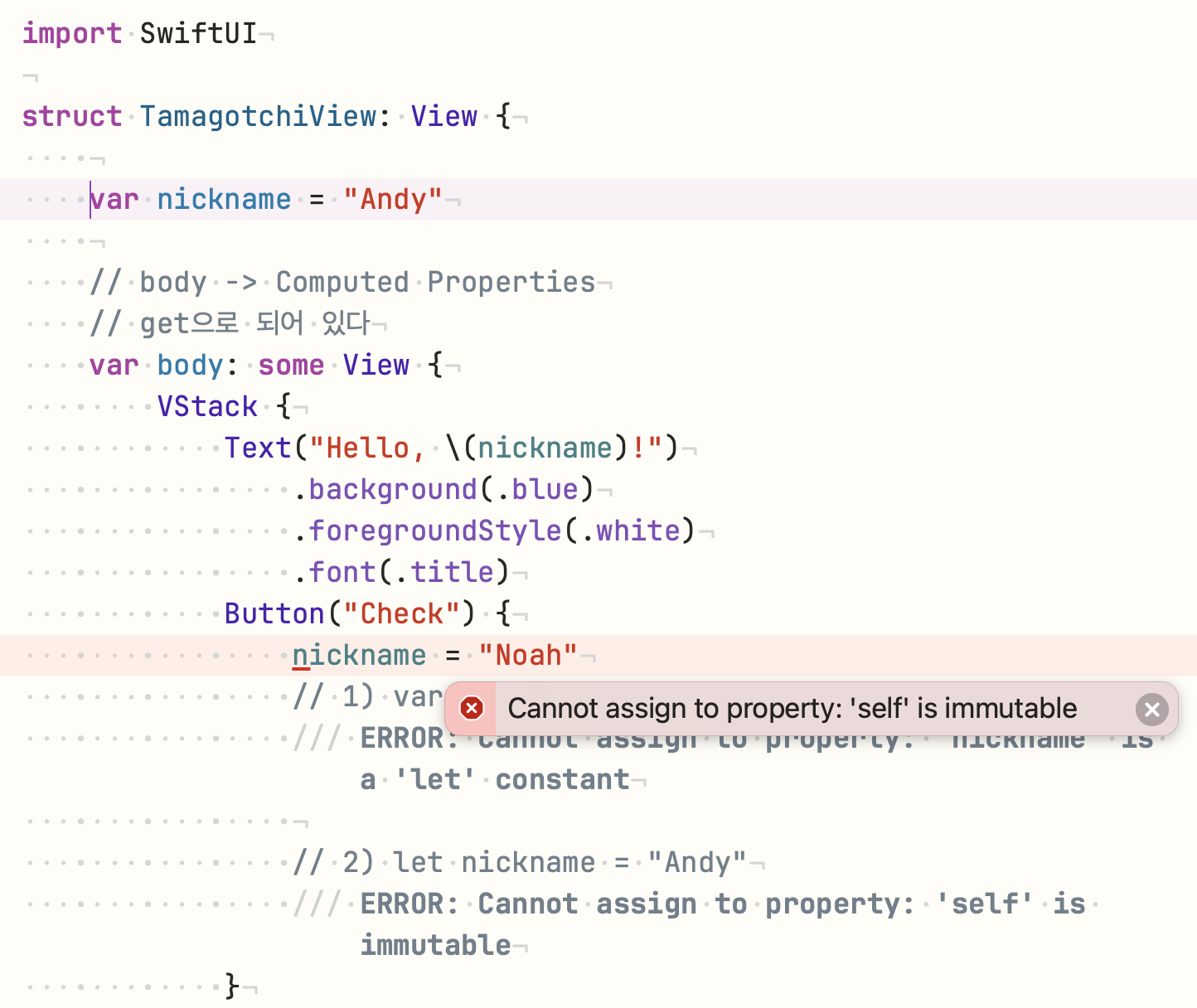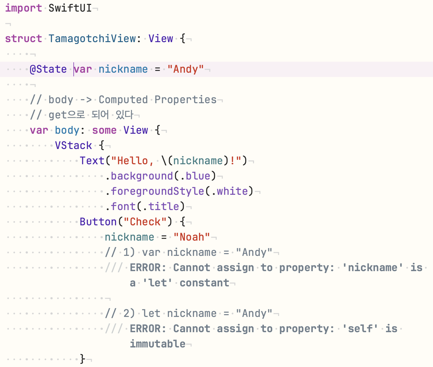 struct 기반의 SwiftUI에서 인스턴스는 immutable 하기 때문에